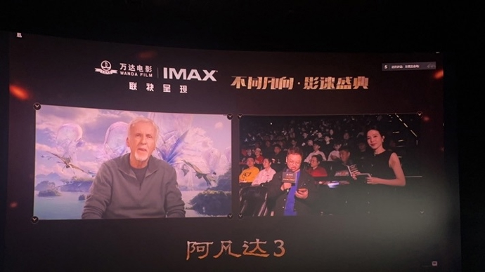«كىنودا، پېرسوناژلار نۇرغۇن قاراڭغۇ سىناق ۋە ئازاب-ئوقۇبەتلەرنى باشتىن كەچۈرىدۇ، بىز ئۇلارنىڭ ئۆزىدىكى كەمتۈكلۈكلەرنى ئېلىپ كېلىپ، نۇرغۇن مەسىلىلەرگە ھەمدە بۇنىڭدىن كېلىپ چىققان قايغۇ ۋە ئۆچمەنلىككە تىرىشىپ تاقابىل تۇرغانلىقىنى كۆرىمىز». تۈنۈگۈن سائەت 22 دىن 30 مىنۇت ئۆتكەندە، «ئاۋاتار 3» (阿凡达3) ناملىق كىنو رەسمىي قويۇلۇش مىنۇتلىرىدا ، پۈتۈن مەملىكەتتىكى 200 دىن ئارتۇق ۋەندا كىنو شەھەرچىسى ۋە خۇەنيىڭ كىنو شەھەرچىسىدىكى IMA X كىنو زالىغا تونۇش بىر چىراي «پاراشۇت بىلەن»چۈشتى، رېژىسسور جامېس كامېرون سىنلىق ئۇلىنىش شەكلىدە ئۆزىنى ئەڭ ياخشى كۆرىدىغان جۇڭگولۇق كۆرۈرمەنلەر بىلەن پىكىر ئالماشتۇردى، ئۇ مۇنداق دېدى:«ھېكايىدىكى غايەت زور كۆك رەڭلىك تاشقى پىلانت ئادەملىرى يەنە بىر دۇنيادىن كەلگەن، لېكىن مېنىڭچە بىز ئۇلارنى ئادەتتىكى ئادەم قاتارىدا چۈشىنىشىمىز كېرەك، چۈنكى بىز ئۆزىمىزدىكى ئىنسان تەبىئىتىنى كۆردۇق. مەن بۇ يەردە بەك كۆپ ئاشكارىلاپ قويسام بولمايدۇ، لېكىن سىلەرنىڭ كىنوخانىدىن چىققاندا، بۇ روللار ئېلىپ كەلگەن ئۈمىدنى ھېس قىلىشىڭلارنى ئۈمىد قىلىمەن. » بۇ قېتىم تېخنىكىدا يەنە ئىلگىرىلەش بولغان «بىز IMAX ۋە 3 D نى ئويلىغىنىمىزدا، كاللىمىزدا غايەت زور مەنزىرە ۋە كىشىنى ھەيران قالدۇرىدىغان مەنزىرىلەر نامايان بولىدۇ»كامېرون قىلچە پىخسىقلىق قىلماپتۇ، كۆرۈرمەن مۇنداق دەيدۇ:«3 D سىزنى شۇ مۇھىتتا تۇرغاندەك، رولچىلار بىلەن بىللە تۇرغاندەك تۇيغۇغا كەلتۈرىدۇ، سىز ھەتتا ئۇلارنىڭ ئازابى، خۇشاللىقى ۋە ھېسسىياتىنى تېخىمۇ ھەقىقىي ھېس قىلالايسىز. ئۇنىڭ ئۈستىگە مېنىڭچە، بۇ دەل كىنوخانىلارنىڭ سېھرىي كۈچى، چۈنكى، ئۇ پويىز بېكەتتىن چىققاندىن كېيىن، تاكى سىز كۆرۈپ بولغۇچە ئاخىرىغىچە ماڭىدۇ، شۇڭا سىز يېرىم يولدا پويىزدىن چۈشۈشكە ئامالسىز قالىسىز».ئۇنى توختىتىپ تۇرۇشقىمۇ ئامالسىز. »